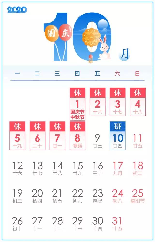 值中秋国庆来临之际,根据"《国务院关于修改<全国年节及纪客日放假办法>的决定》"的有关规定,结合我司实际情况,经领导班子研究决定,现将2020年中秋节放假事项通知如下∶ 一、中秋节放假时间定为10月1日~10月8日 共8天。9月27日(周日与10月10日(周六…....【点击详情】